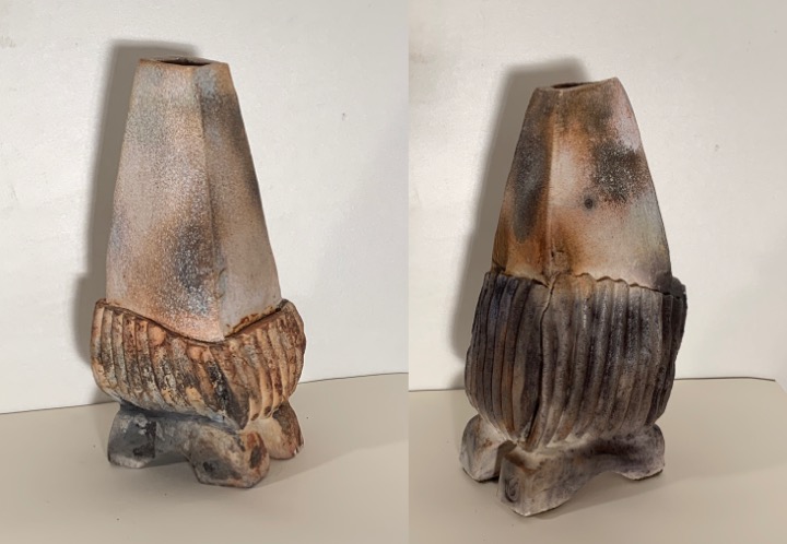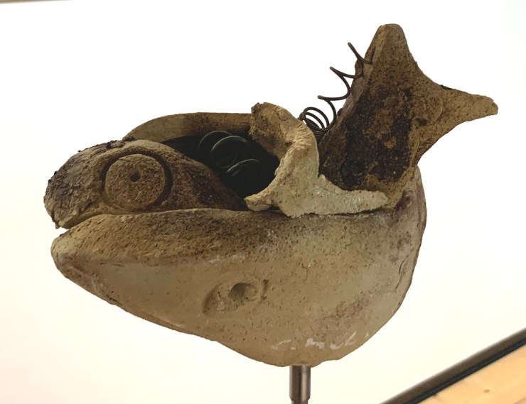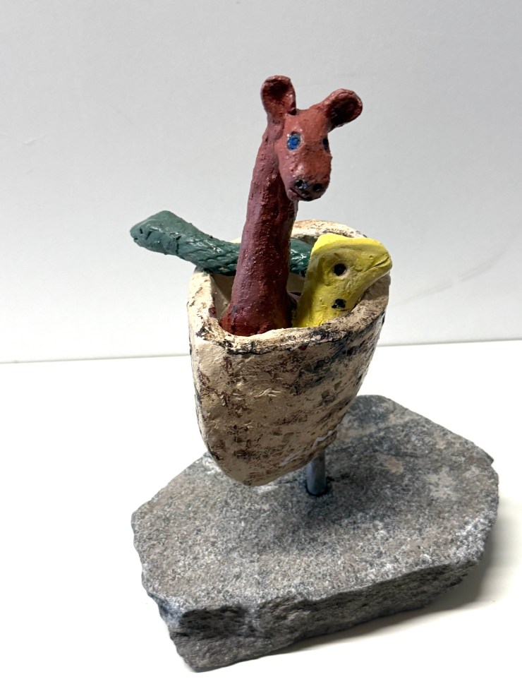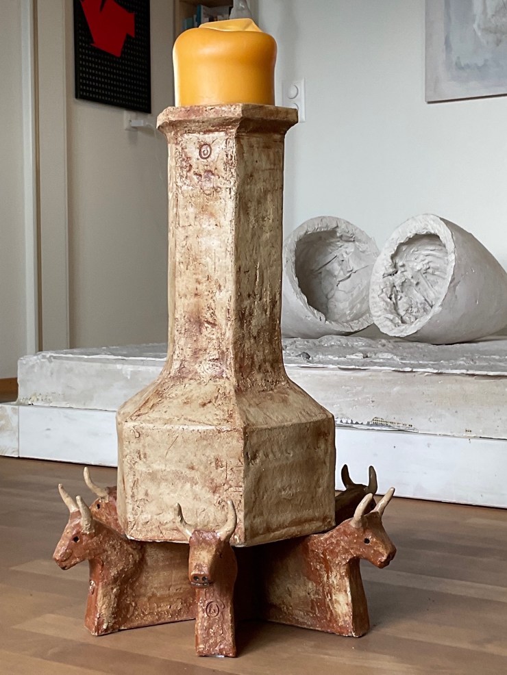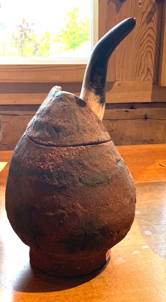 Homage to the cow horn, vessel with cow horn and bird (30cm, 2023)