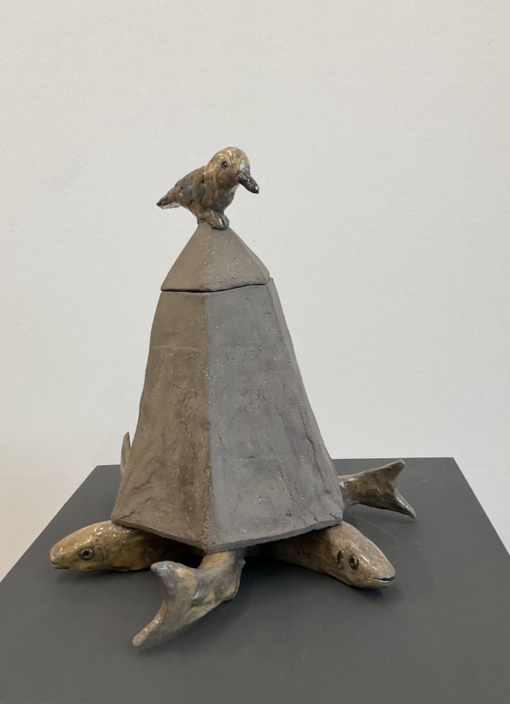 Gefäss mit Fischen und Vogel Vessel with fishes and birde (h33 cm, 2022)