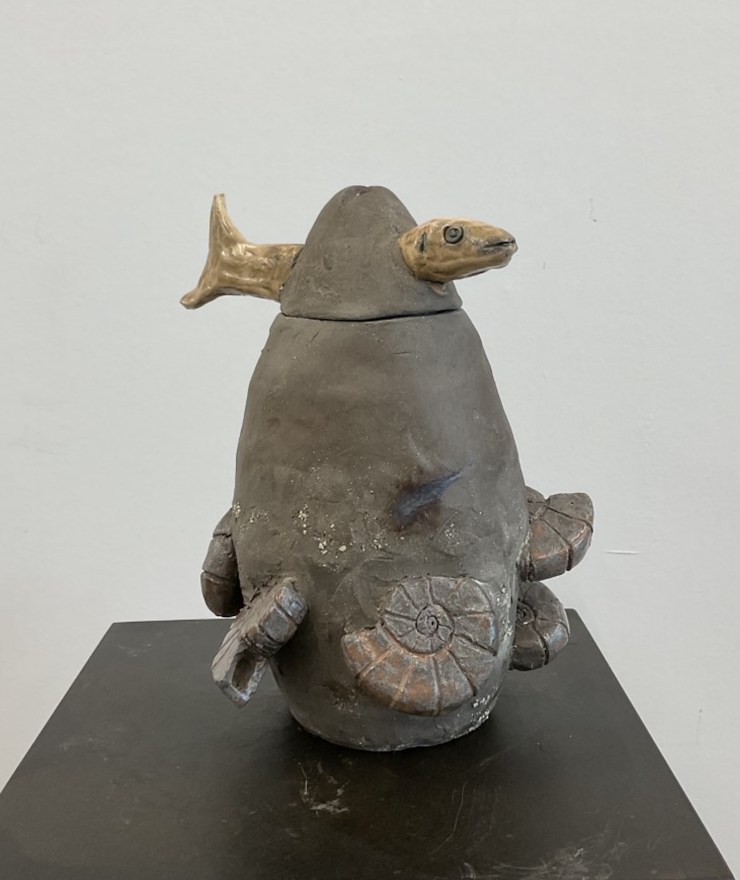 Gefäss mit Ammoniten und Fisch Vessel with ammonites and fish (h 32 cm, 2022)