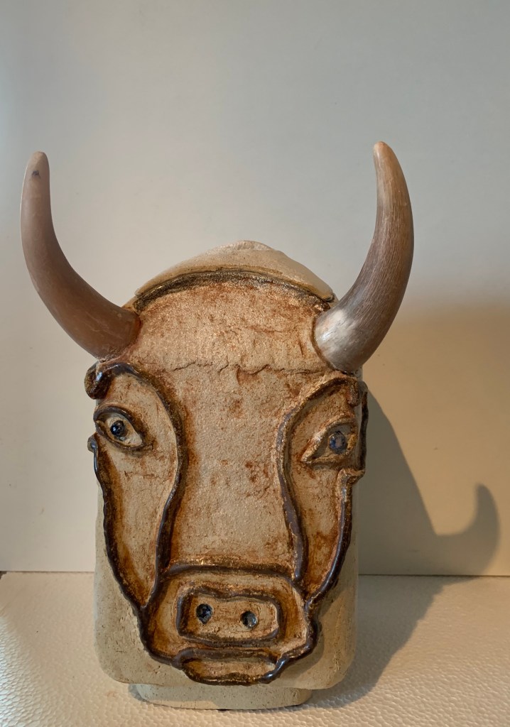 Hommage an PICASSO, Gefäss mit kuhhorn (37 cm, 2024)